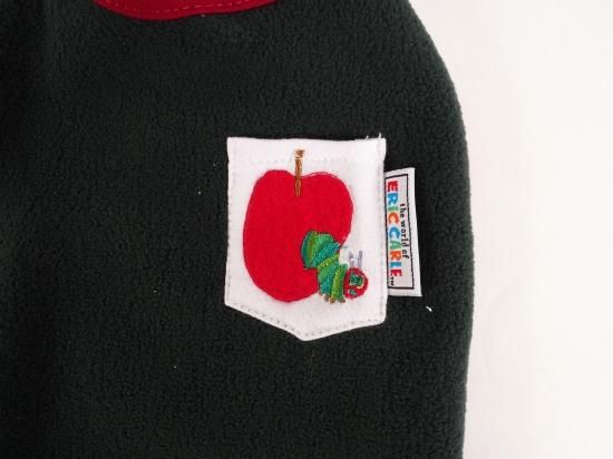 ポケットに「はらぺこあおむし」の刺繍を施しています